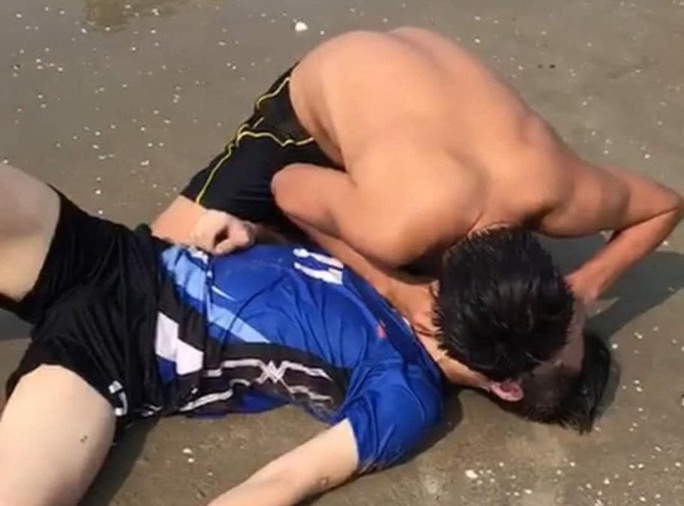 Trong lúc nắm tay nhau đứng trên ụ cát ngoài biển ở xã Phước Tỉnh theo hình tròn, nhóm thanh niên này bất ngờ bị sóng biển đập vào người làm mất thăng bằng, cả nhóm ngã xuống biển.