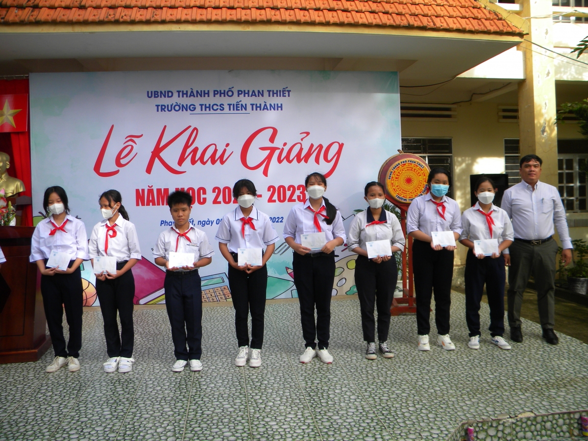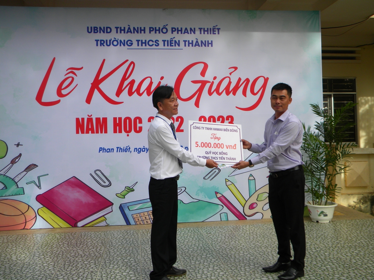 Cũng trong Lễ khai giảng, 20 học sinh có hoàn cảnh khó khăn của trường đã nhận được 20 suất học bổng (500.000,đ/suất); Công ty TNHH Wai Biển Đông tặng nhà trường 05 triệu đồng.