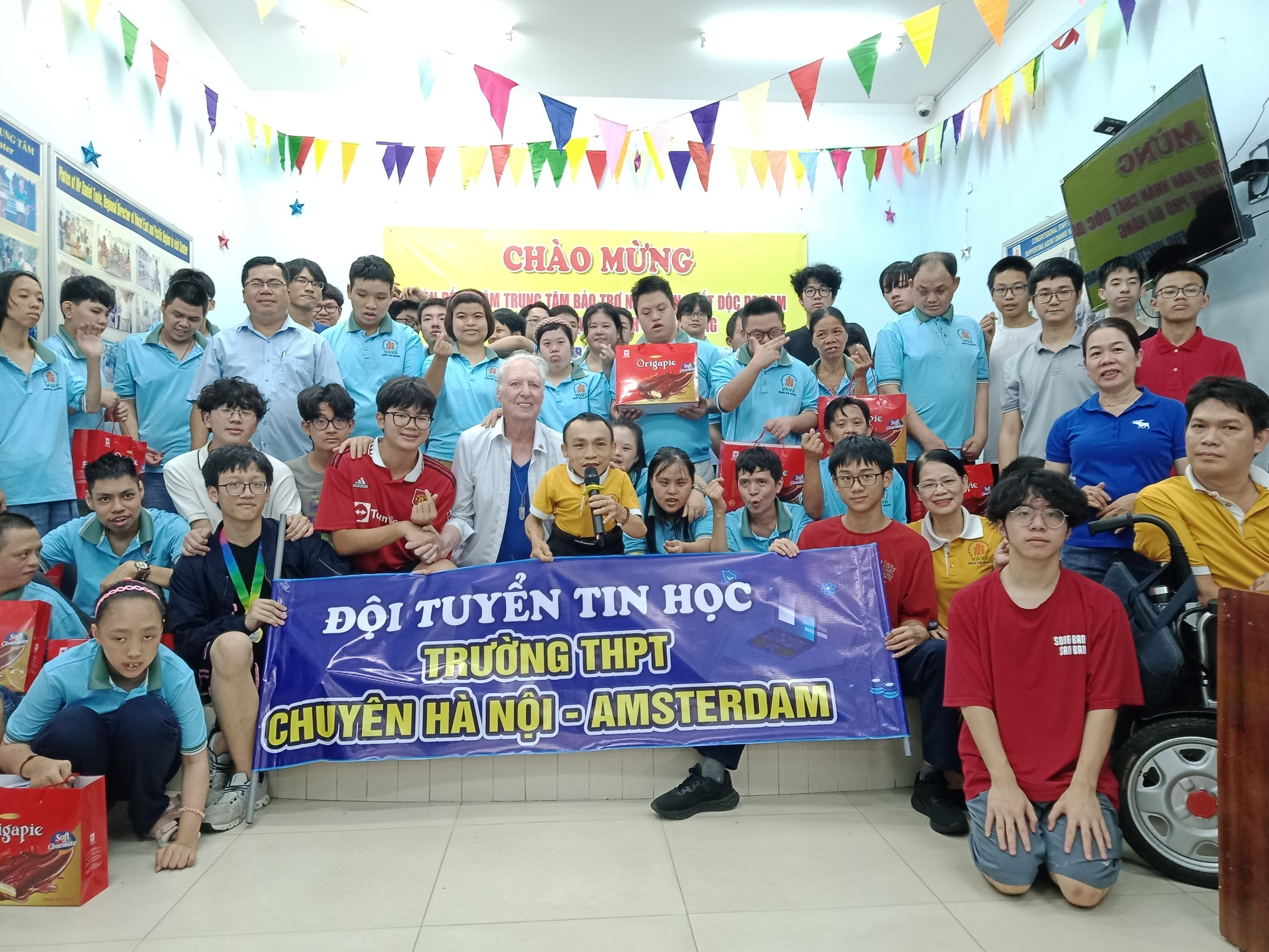 Trong khuôn khổ vòng Chung kết kỳ thi Olympic tin học miền Trung và Tây Nguyên lần thứ V, năm 2024 tại Đà Nẵng, ngày 30/3 Đội tuyển Tin học Trường THPT chuyên Hà Nội - Amsterdam gồm 20 người là giáo viên và học sinh đã đến thăm, giao lưu và tặng quà cho nạn nhân chất độc da cam tại Trung tâm Bảo trợ nạn nhân chất độc da cam và Trẻ em bất hạnh thành phố Đà Nẵng. Tại đây giáo viên và Đội tuyển Tin học của Trường THPT chuyên Hà Nội - Amsterdam đã giao lưu các tiết mục văn nghệ do các nạn nhân chất độc da cam biểu diễn, tham quan các mô hình hoạt động của Trung tâm như làm hương, làm hoa, tin học, may mặc... Ngoài ra còn tặng quà và tiền mặt cho Trung tâm để hỗ trợ thêm cho việc duy trì nuôi dưỡng nạn nhân chất độc da cam ngày càng tốt hơn. Được biết, Trường THPT chuyên Hà Nội-Amsterdam lần đầu tiên đến với Trung tâm Bảo trợ nạn nhân chất độc da cam và Trẻ em bất hạnh thành phố Đà Nẵng, các bạn học sinh được giao lưu và tận mắt chứng kiến những khuôn mặt hồn nhiên, ngộ nghĩnh, dị dạng…, sự thiệt thòi của các nạn nhân chất độc da cam, hàng ngày phải gánh chịu những nỗi đau trên cơ thể mình. Qua đó cũng giáo dục lòng nhân ái, sự sẻ chia của cộng động đối với nạn nhân chất độc da cam.