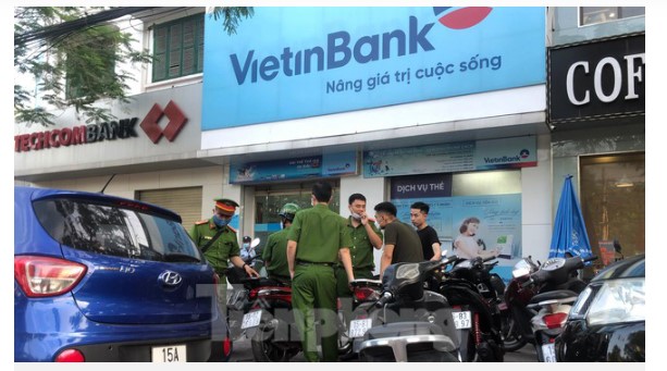 Cảnh sát điều tra vụ cướp ngân hàng trên phố Lạch Tray, TP Hải Phòng.