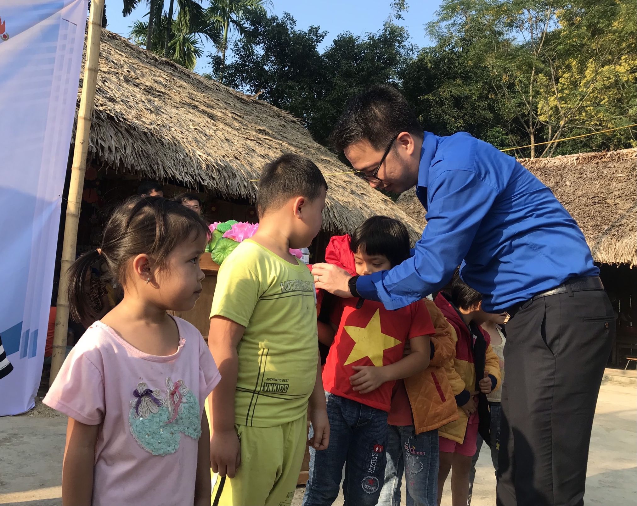 Đồng chí Nguyễn Tường Lâm, Bí thư Trung ương Đoàn, Phó chủ tịch Thường trục Hội Liên hiệp thanh niên Việt Nam tặng quà các em có hoàn cảnh khó khăn tại xã Xuân Lẹ, Thường Xuân, Thanh Hóa