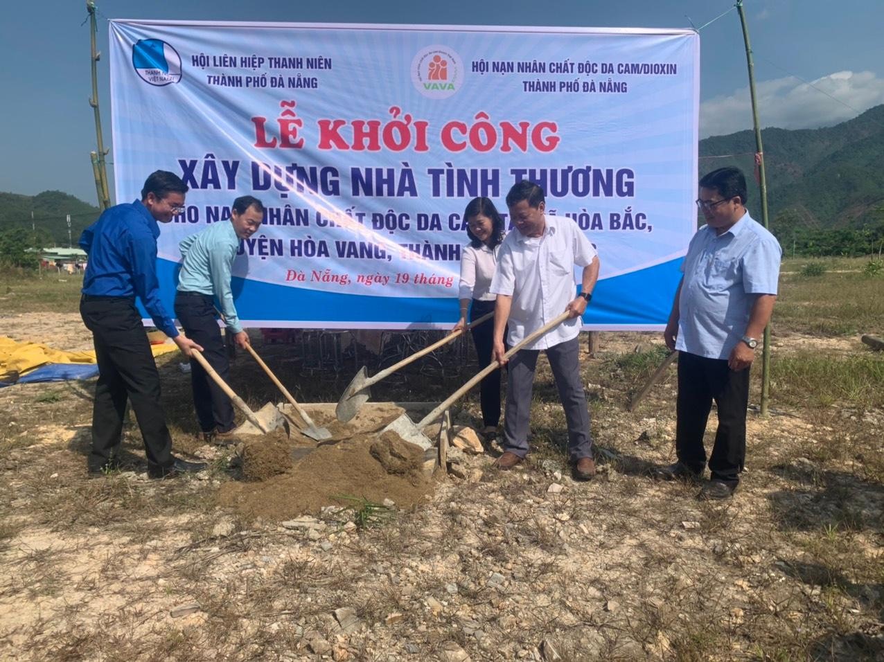Hội Liên hiệp thanh niên thành phố Đà Nẵng hỗ trợ kinh phí xây dưng nhà Tình thương cho NNCĐ DC tại huyện Hòa Vang, Đà Nẵng. Ảnh lãnh đạo Hội LHTH và Hội NNCĐ DC/dioxin tp Đà Nẵng khởi công cong trinh Nhà tình thương.