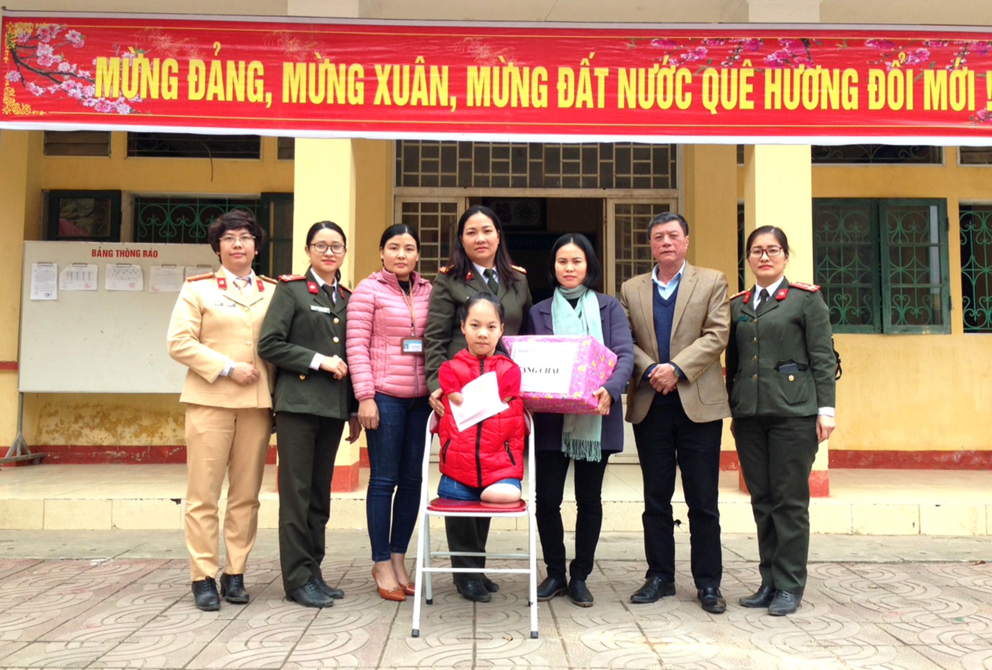 Cán bộ, chiến sỹ Công an Nhân dân tỉnh Yên Bái thăm và tặng quà cháu Nguyễn Linh Chi là nạn nhân thế hệ thứ 3, đang được nuôi dưỡng tại Trung tâm bảo trợ xã hội tỉnh Yên Bái