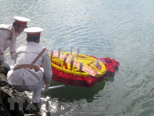 Để tưởng nhớ hương hồn các anh hùng, liệt sỹ, đoàn công tác đã dành một phút mặc niệm. Sau đó, đoàn công tác đã dâng hương, thả vòng hoa, lễ vật tưởng niệm cán bộ, chiến sỹ đã anh dũng hy sinh trên thềm lục địa phía Nam của Tổ quốc./.