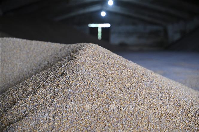 Ngũ cốc sau khi được thu hoạch tại một nông trang ở vùng Odessa, Ukraine, ngày 22/5/2022.