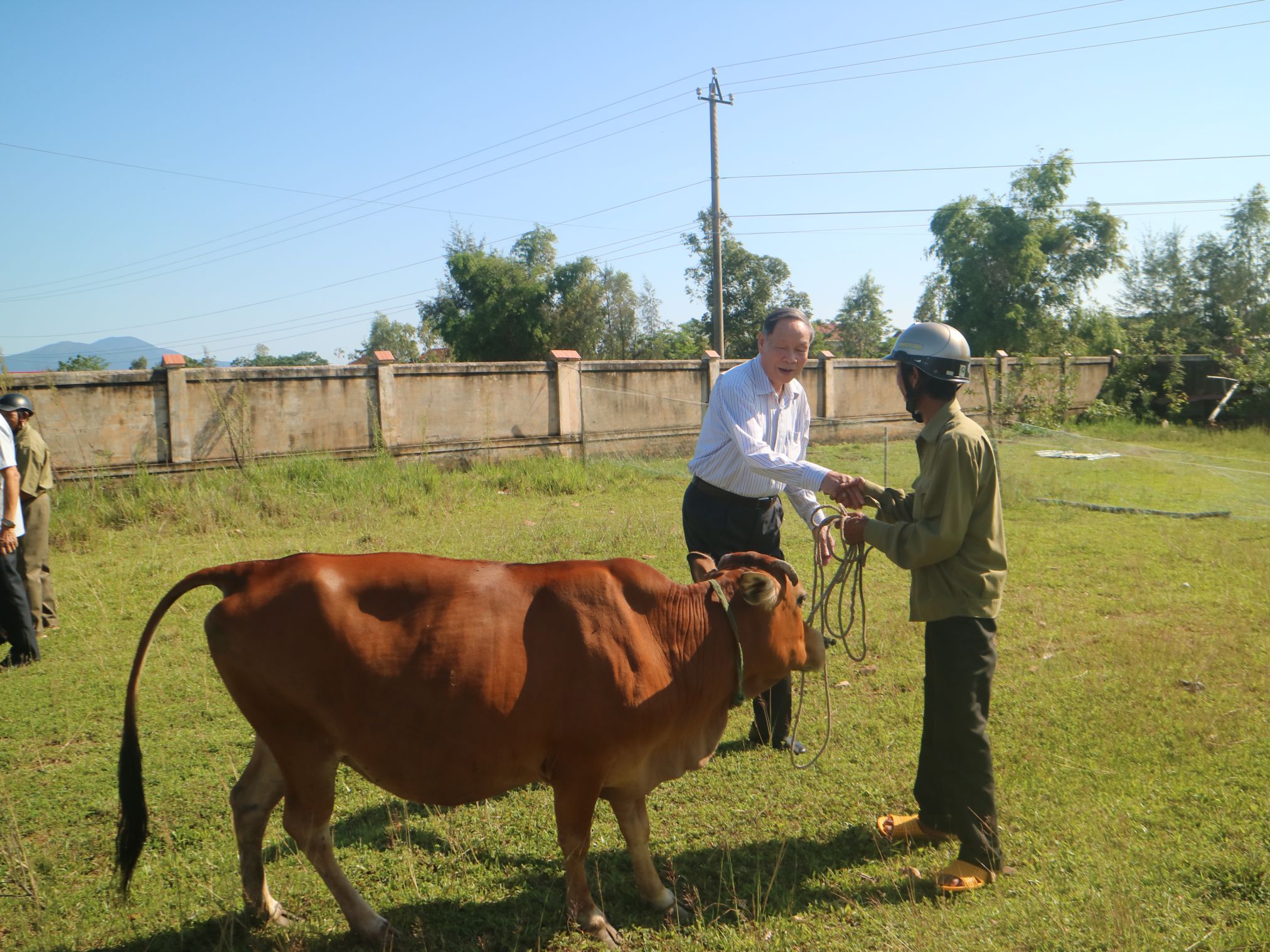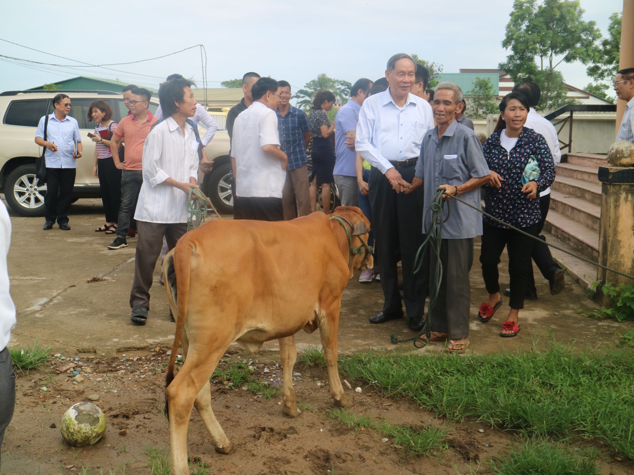 Chủ tịch Nguyễn Văn Rinh trao bò giống sinh sản cho nạn nhân