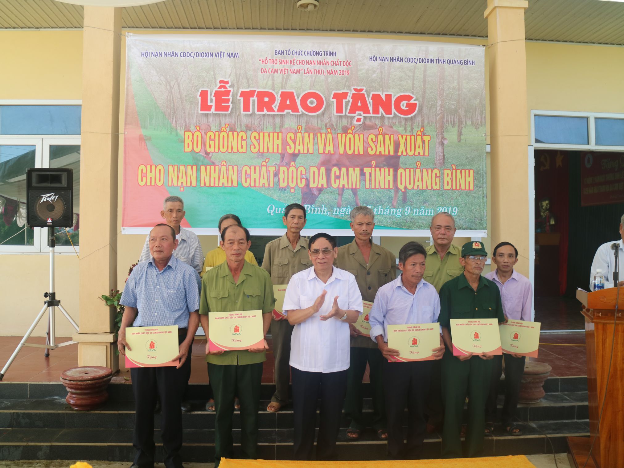 Theo kế hoạch, ngày 5 tháng 9 năm 2019, Ban tổ chức Chương trình “Hỗ trợ sinh kế cho nạn nhân CĐDC Việt Nam” lần thứ I, năm 2019 do Tạp chí Da cam Việt Nam phối hợp với các cơ quan tổ chức, đi thăm và tặng bò giống sinh sản, hỗ trợ vốn sản xuất cho NNCĐDC thuộc hai tỉnh trên. Đoàn do Thượng tướng Nguyễn Văn Rinh, nguyên Ủy viên BCH Trung ương Đảng, nguyên Thứ trưởng Bộ Quốc phòng, Chủ tịch Hội NNCĐDC/dioxin Việt Nam làm Trưởng đoàn. Tham gia Đoàn công tác còn có Ban tổ chức Chương trình; lãnh đạo của các ban thuộc Trung ương Hội; các báo, đài; đặc biệt, trong đoàn còn có những mạnh thường quân, tuy tuổi đời còn trẻ nhưng họ thành đạt trên con đường lập nghiệp và có chung suy nghĩ, mình có được sự nghiệp như ngày nay là nhờ sự hy sinh to lớn của các bậc cha ông. Vì thế, đây được coi là việc làm tri ân của thế hệ trẻ đối với những người hoạt động kháng chiến, đã vì sự nghiệp cách mạng cao cả của Đảng mà hy sinh, mất mát. Thật là một nghĩa cử vô cùng cao đẹp!