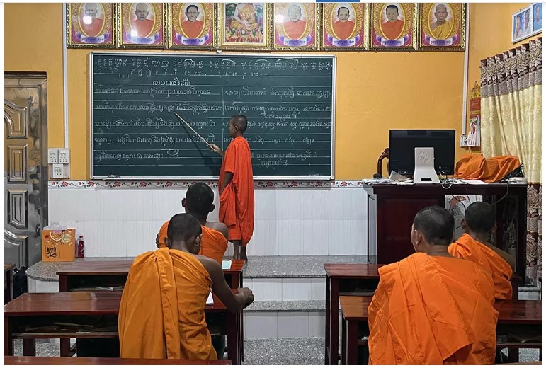 Vào dịp hè, sư Chau Sóc Thon lại lên lớp dạy chữ Khmer cho con em đồng bào dân tộc