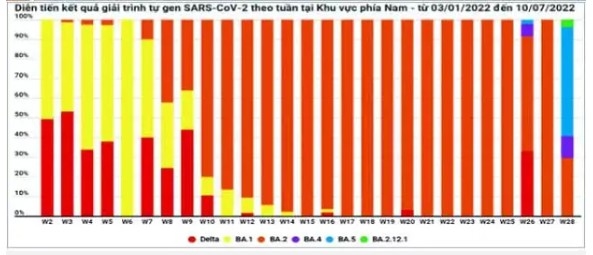 Về kết quả giải trình tự gen, trong số hơn 360 mẫu được giám sát từ đầu năm thì phát hiện chủ yếu là chủng Omicron. Từ tháng 6, khu vực này phát hiện thêm biến thể phụ của Omicron là BA.5 tại Hà Nội, và sau đó là tại Cao Bằng, Thái Bình, Nghệ An và Hải Dương.