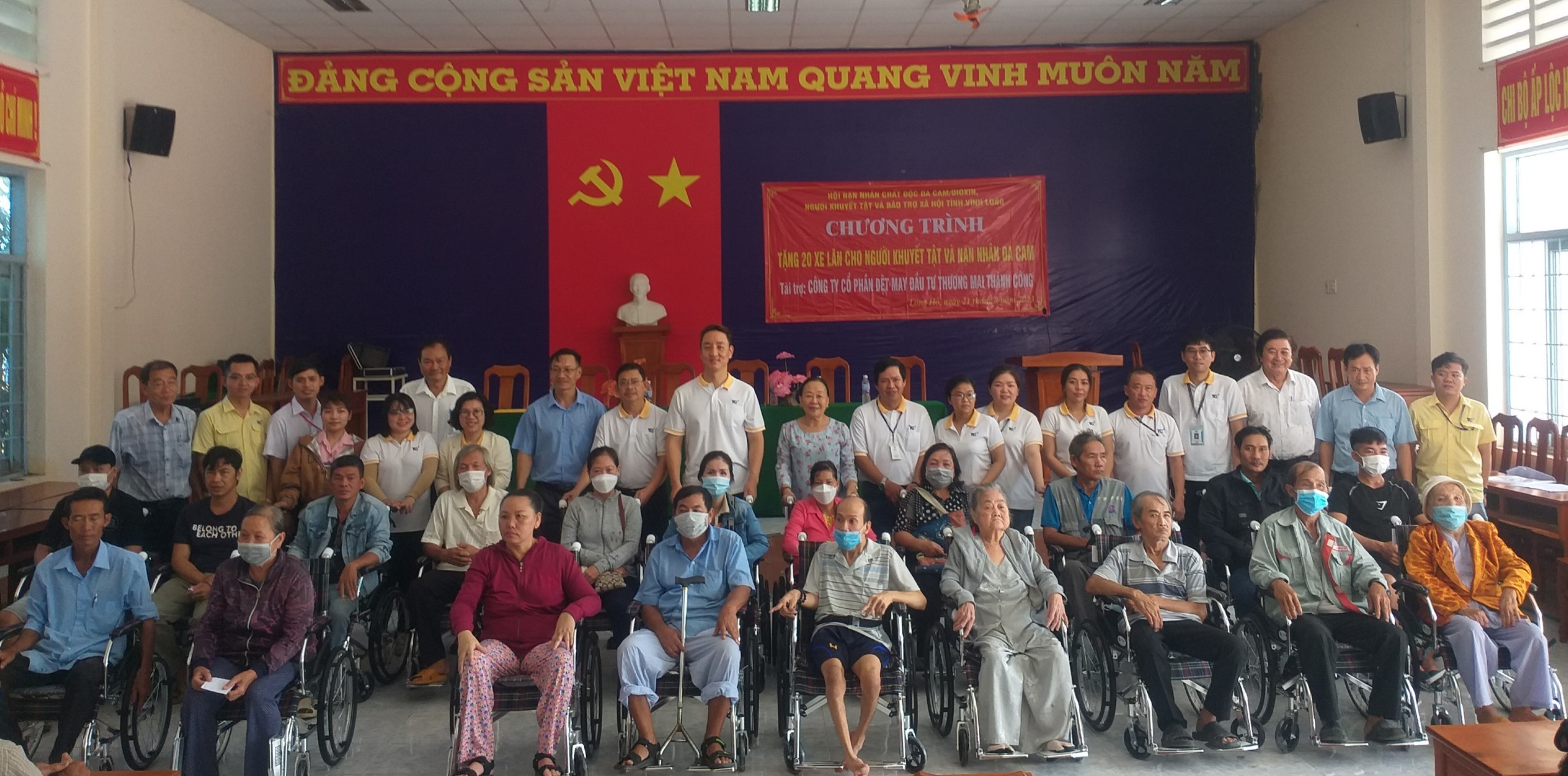 Thực hiện các hoạt động hưởng ứng Tháng hành động vì nạn nhân chất độc da cam năm 2023 (từ ngày 01/8 đến 31/8/2023), sáng 21/8/2023, tại Nhà Văn hóa xã Hòa Phú, huyện Long Hồ, tỉnh Vĩnh Long, Hội Nạn nhân chất độc da cam/dioxin - Người khuyết tật và Bảo trợ xã hội tỉnh Vĩnh Long tổ chức chương trình trao tặng 20 xe lăn, cho nạn nhân chất độc da cam trên địa bàn huyện Long Hồ, những nạn nhân được nhận xe lăn sẽ có phương tiện di chuyển được dễ dàng, thuận lợi hơn trong sinh hoạt hằng ngày. Tổng giá trị là 40 triệu đồng, nguồn kinh phí này do Công ty Cổ phần Dệt may Đầu tư Thương mại Thành Công tài trợ.