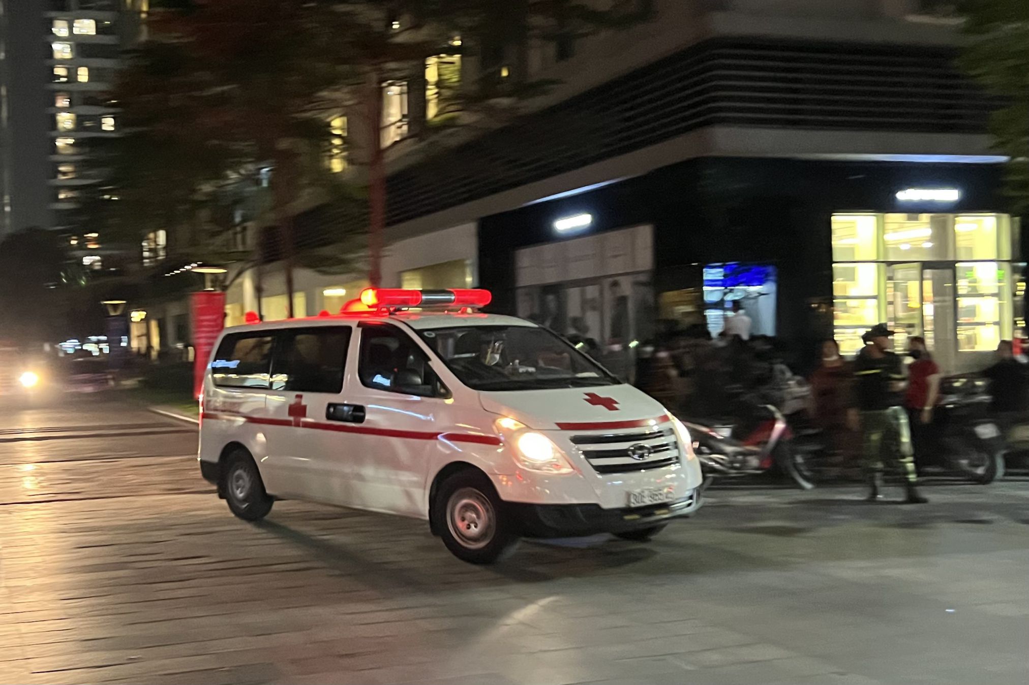 Xe cứu thương đưa các thi thể rời khu đô thị. Ảnh: Hải Nam.