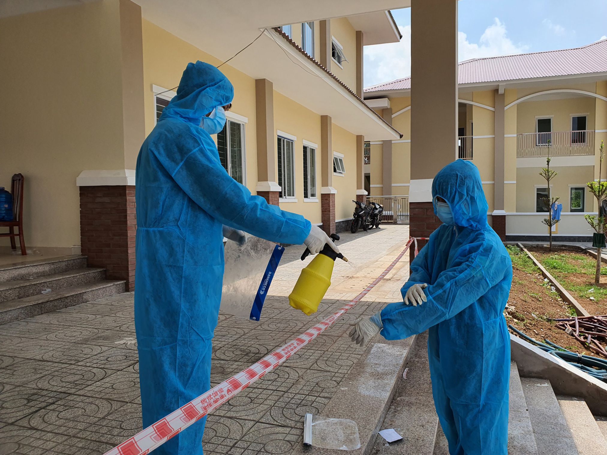 Lực lượng chức năng làm việc trong khu cách ly tập trung. Ảnh: Thanh Niên