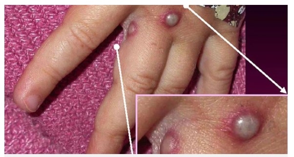 | Mụn mủ (tổn thương chứa đầy dịch vàng) là một trong những triệu chứng của bệnh đậu mùa khỉ - Ảnh: GETTY |