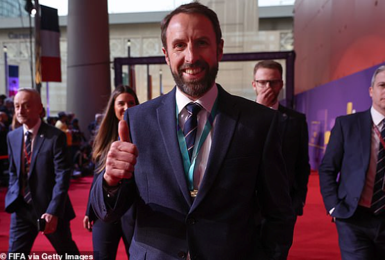 Huấn luyện viên tuyển Anh Gareth Southgate trên thảm đỏ tại lễ bốc thăm.