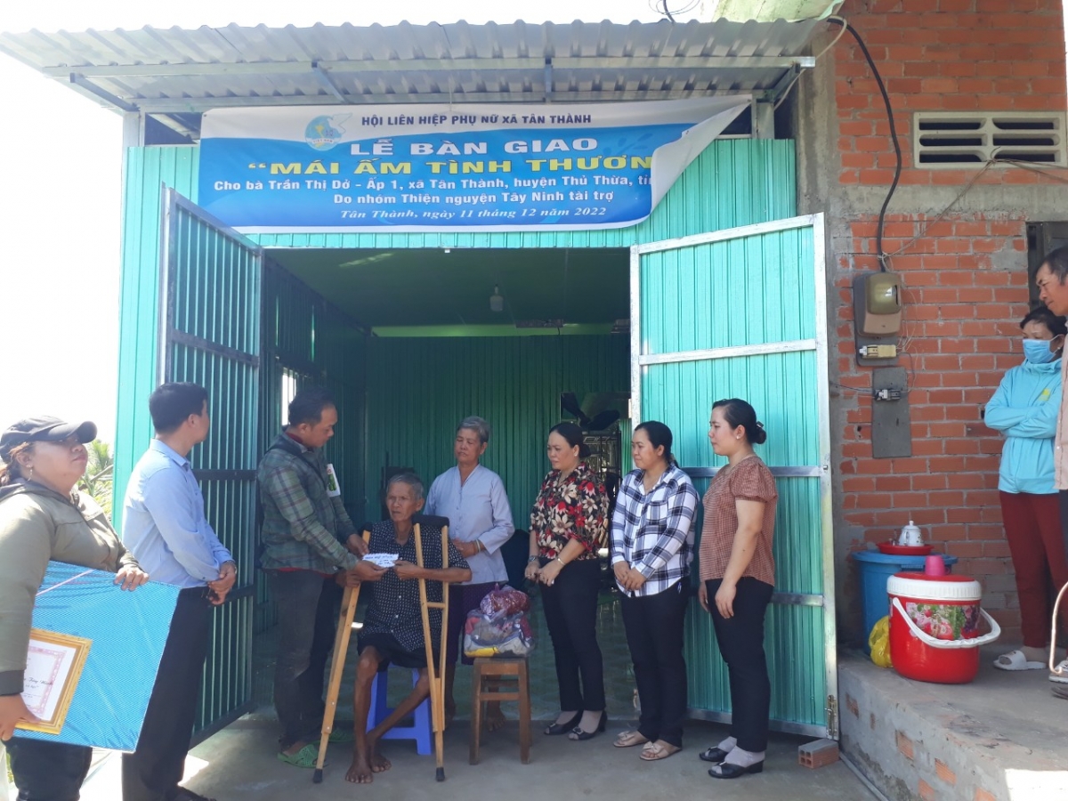 Căn nhà “Mái ấm tình thương” được trao tặng là nhà tiền chế, có diện tích 33 m2, mái lợp tôn, có la phông, nền lát gạch bông trị giá 42 triệu đồng, do Hội Phụ nữ xã thông qua ông Phạm Văn Linh, nguyên Phó Bí thư Chi bộ ấp 4 xã Tân Thành vận động “Nhóm Thiện nguyện” tỉnh Tây Ninh tài trợ.