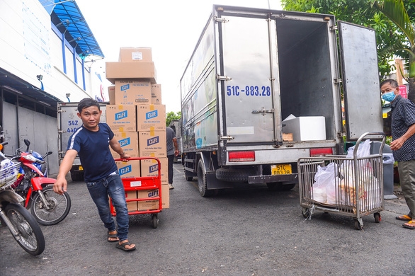 | Xe tải bốc dỡ hàng hóa tại một siêu thị ở TP.HCM - Ảnh: QUANG ĐỊNH |