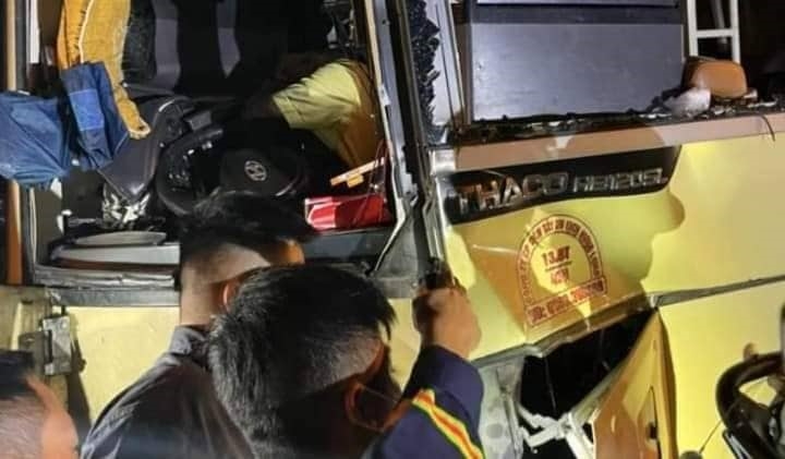 Tại hiện trường, xe khách mang BKS: 29B-606.xx chạy hướng Hà Nội-Vinh ᵭâm vào xe bồn chở xi măng rời 37C-105.xx di chuyển cùng chiều. Trên xe có 19 hành khách bị thương và 1 tài xế mắc kẹt trong cabin.