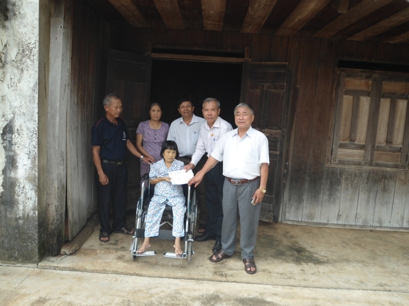 | Ông Phạm quyết Thắng tặng xe lăn cho nạn nhân xã Hòa Khánh