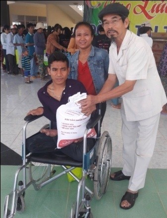 Ông Trần Tiến Thành, Chủ tịch Hội NNCĐDC/dioxin tỉnh Bình Thuận thăm và tặng quà cho NNCĐDC