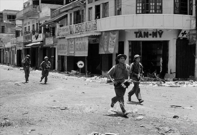 | Quân giải phóng tiến vào giải phóng thị xã Quảng Trị. Ảnh: Tư liệu TTXVN |