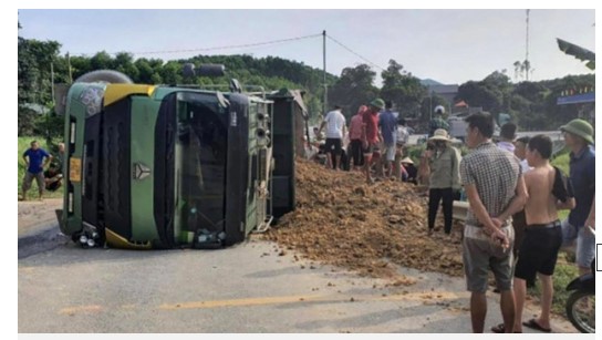 Khi đến địa phận huyện Yên Thuỷ, tỉnh Hoà Bình, xe chở đất đi ngược chiều lao nhanh, lấn làn và đè bẹp ô tô con.