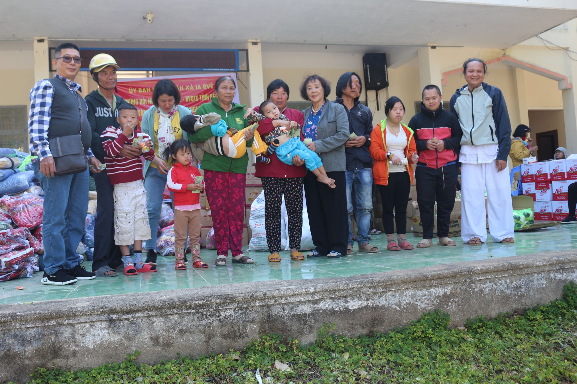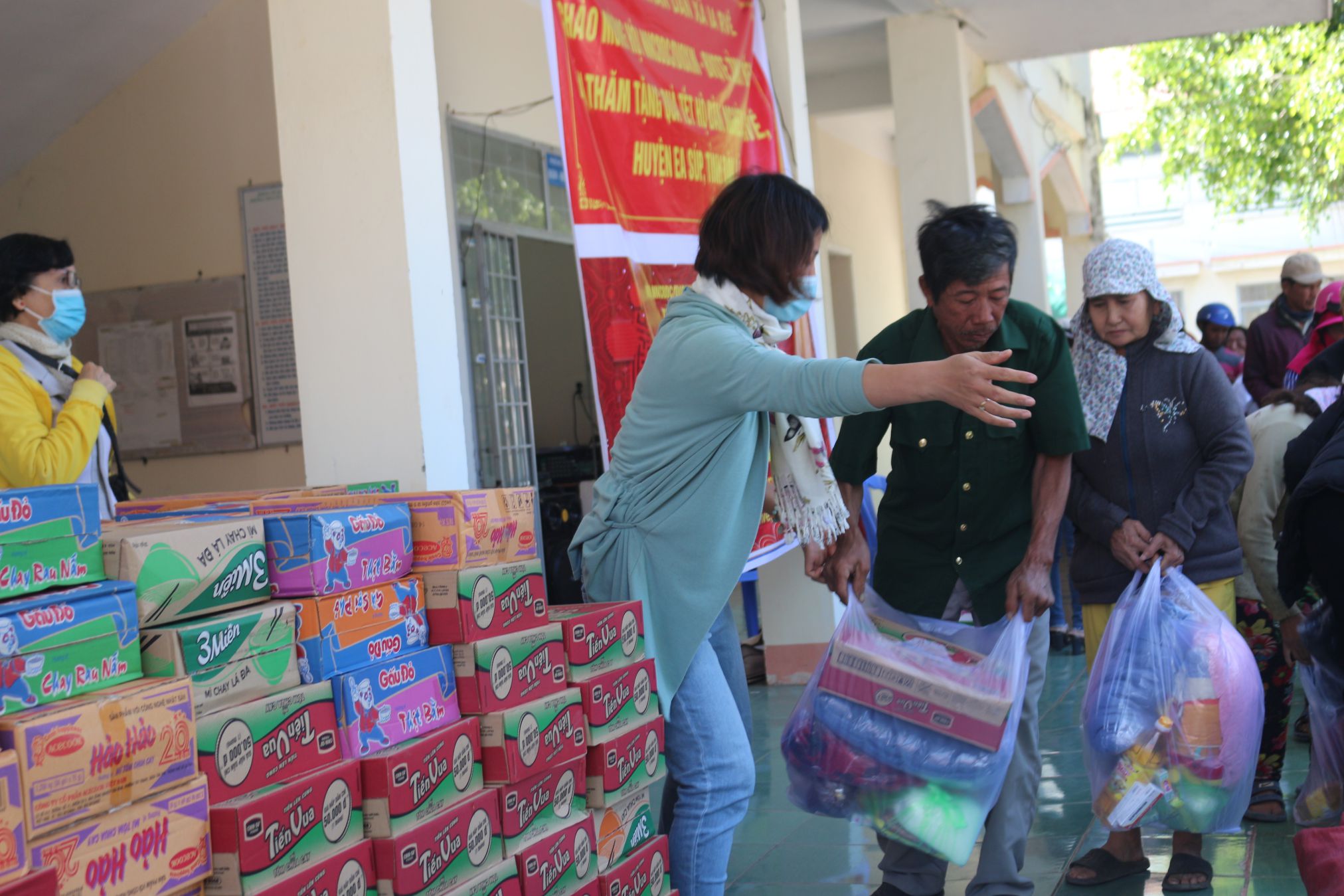 Giá trị một suất quà cho hộ dân là 800.000 đồng, học sinh là 330.000 đồng gồm có gạo, các mặt hàng nhu yếu phẩm, ngoài ra đoàn còn tặng 500 mền, 100 áo ấm, 3000 quyển tập 100 trang, bánh kẹo…. Tổng trị giá quà tặng là 330 triệu đồng.