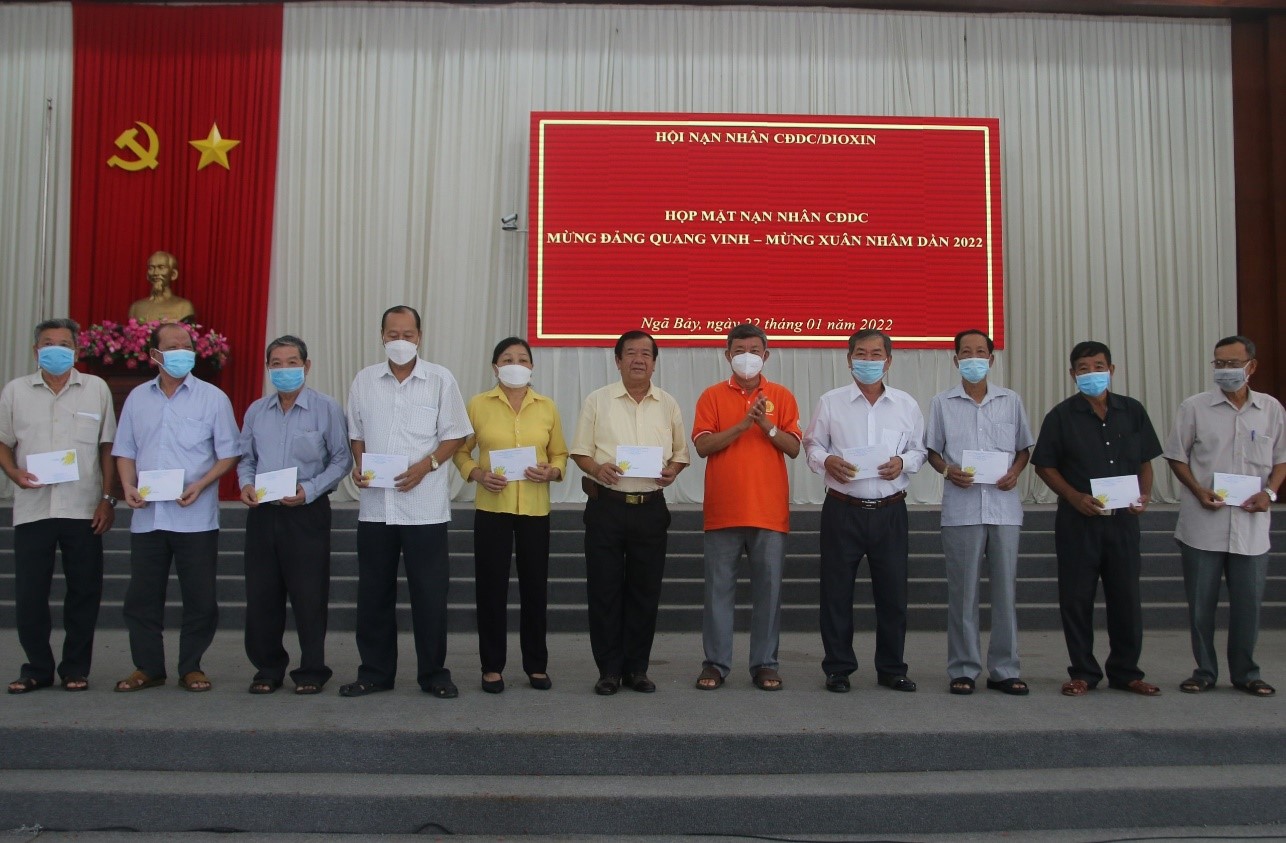 Trước thềm Tết Nguyên đán Nhâm Dần 2022, Hội NNCĐDC/dioxin tỉnh phối hợp với 8 huyện, thị, thành Hội tổ chức nhiều điểm họp mặt dành cho NNCĐDC trên toàn tỉnh. Tại các buổi họp mặt, Tỉnh hội đã trao 1.243 phần quà, mỗi phần trị giá từ 400.000 - 500.000 đồng cho NNCĐDC, những trường hợp nghi nhiễm CĐDC và nạn nhân da cam không may bị mắc Covid-19. Tổng giá trị quà tặng lên đến hơn 400 triệu đồng, được vận động từ các nhà hảo tâm, mạnh thường quân trong và ngoài tỉnh. Bên cạnh đó, các huyện, thị, thành hội cũng đã tổ chức thăm hỏi riêng và trao quà cho khoảng 800 nạn nhân. Trong Quý I năm nay, sẽ có 14 gia đình NNCĐDC được giúp đỡ vốn để sửa chữa nhà cửa và chăn nuôi.