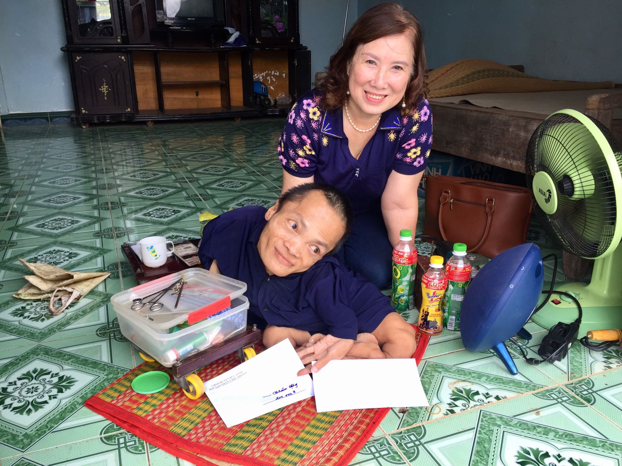 Bà Phạm Thu Hà thăm và tặng quà cho NNCĐDC/dioxin Nguyễn Thị Kết, 65 tuổi ở xã Nam Chính, huyện Đức Linh, tỉnh Bình Thuận