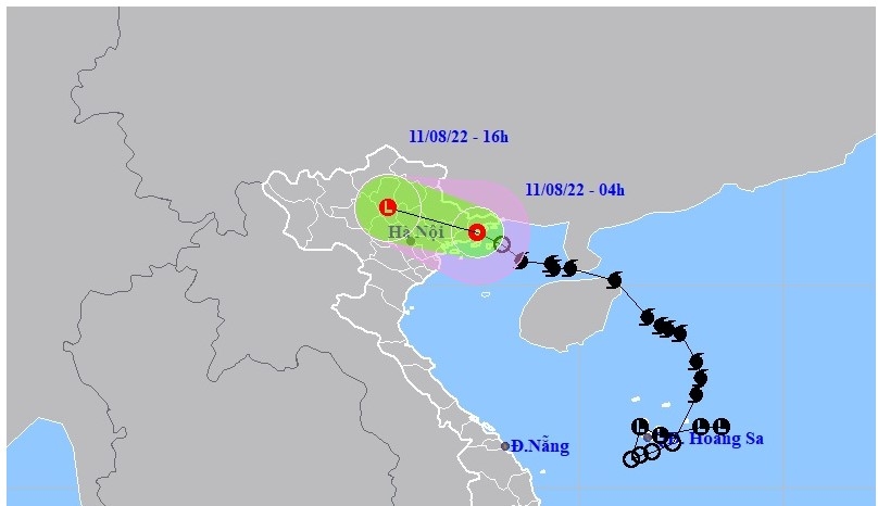 Lúc 4h sáng 11-8, vị trí tâm áp thấp nhiệt đới ở trên khu vực các tỉnh thành Quảng Ninh - Hải Phòng. Sức gió mạnh nhất vùng gần tâm áp thấp nhiệt đới mạnh cấp 6 (39 - 49km/h), giật cấp 8.