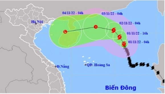 Trung tâm Dự báo khí tượng thủy văn quốc gia cho biết, hồi 4h00 ngày 1/11, vị trí tâm bão số 7 ở vào khoảng 18,7 độ Vĩ Bắc; 116,2 độ Kinh Đông, cách quần đảo Hoàng Sa khoảng 570km về phía Đông Đông Bắc. Sức gió mạnh nhất vùng gần tâm bão mạnh cấp 11 (103-117km/giờ), giật cấp 13.