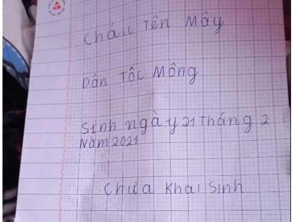 Theo thông tin ban đầu, vào ngày 17/4, người dân thôn Tả Van Dáy 2, thuộc xã Tả Van phát hiện một bé gái bị bỏ rơi ở khu sân ngắm cảnh kèm tờ giấy có nội dung: "Cháu tên Mây, sinh ngày 21/2/2021, chưa khai sinh".
