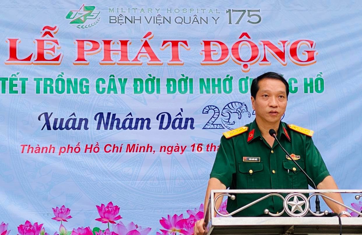 Phát biểu tại buổi Lễ, Đại tá, Tiến sĩ Trần Quốc Việt, Bí thư Đảng ủy, Phó Giám đốc Bệnh viện Quân y 175 nhấn mạnh: Tết trồng cây - một hoạt động vô cùng ý nghĩa, nhất là trong giai đoạn hiện nay khi các hệ quả do biến đổi khí hậu ngày càng nghiêm trọng và khó lường. Việc trồng thêm cây xanh trong khuôn viên Bệnh viện Quân y 175 không chỉ thể hiện sự chung tay của Bệnh viện hưởng ứng tích cực phong trào trồng cây xanh của nước ta, mà còn giúp cho Bệnh viện có thêm cảnh quan đẹp, xanh mát và đặc biệt thêm nhiều cây thuốc quý.