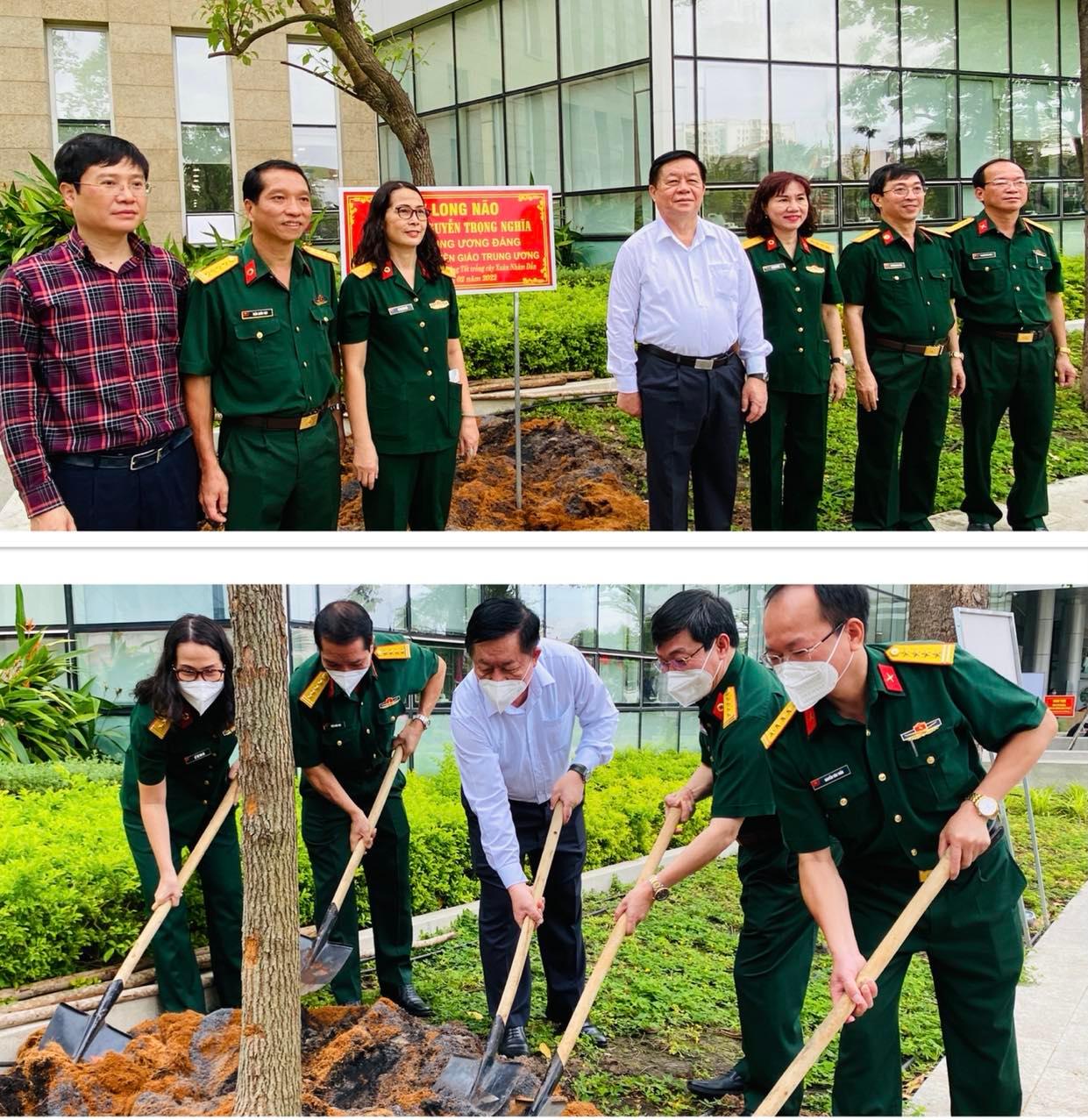 | Đồng chí Nguyễn Trọng Nghĩa và lãnh đạo Bệnh viện Quân y 175 tham gia trồng cây ngay sau Lễ phát động. |