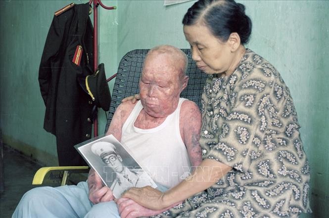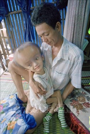 - Chiến tranh đã lùi xa 45 năm, song hàng triệu người dân Việt Nam và những thế hệ thứ ba, thứ tư sinh ra trong hòa bình vẫn hằng ngày phải mang trong mình di họa của cuộc chiến ấy - phơi nhiễm chất độc da cam/dioxin do Mỹ rải xuống khắp chiến trường miền Nam trong 10 năm trời, bắt đầu từ ngày 10/8/1961. Từ năm 2004, ngày 10/8 hằng năm được lấy làm ngày “Vì nạn nhân chất độc da cam Việt Nam”. Nhiều hành động, chính sách của Đảng và Nhà nước đã được thực thi nhằm giải quyết hậu quả chất độc hóa học do Mỹ gây ra ở Việt Nam, cùng chia sẻ với nỗi đau của nạn nhân chất độc da cam/dioxin và cũng để thức tỉnh lương tri nhân loại cùng chung tay đấu tranh đòi công lý cho các nạn nhân. Ảnh: TTXVN