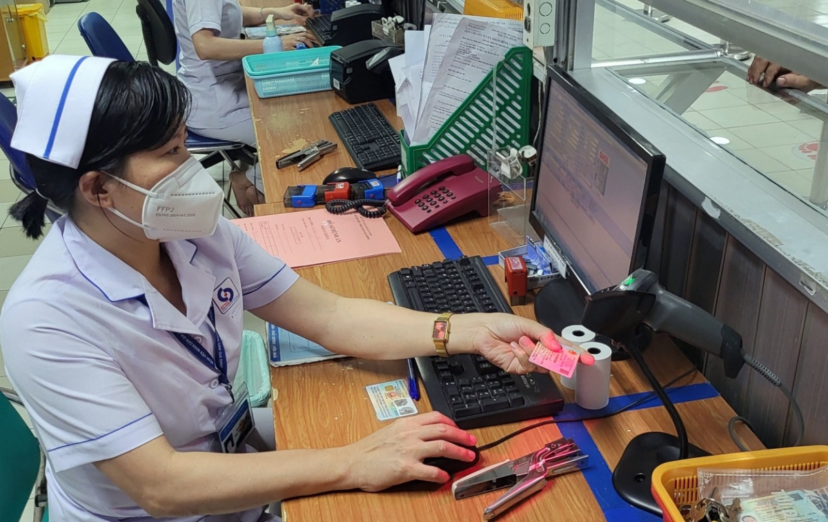 | Nhân viên y tế quét mã QR trên CCCD gắn chíp để làm thủ tục khám chữa bệnh. Ảnh: CA Thanh Hóa. |