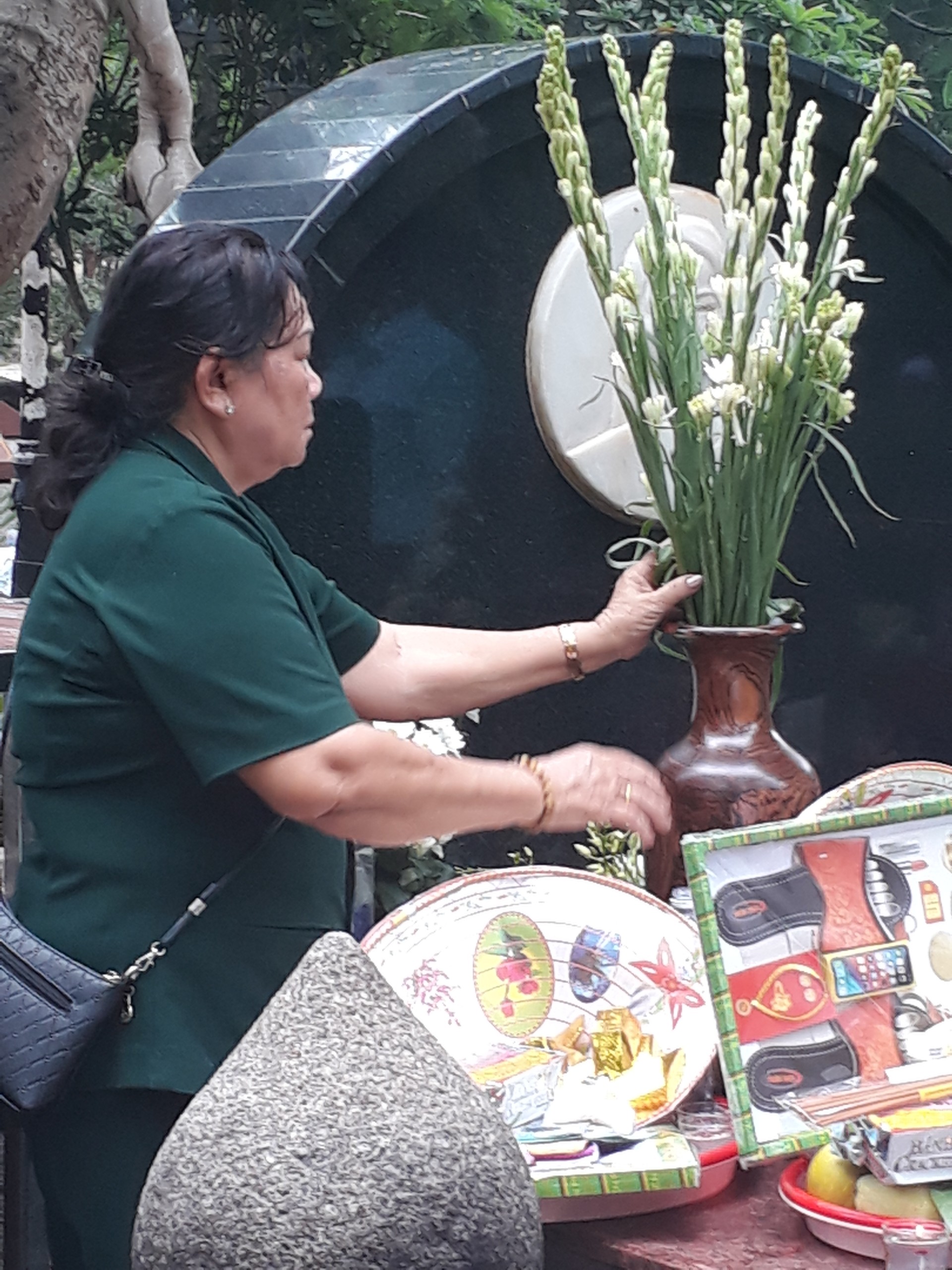 Chị Duyên dâng hoa tại mộ người nữ Anh hùng Võ thị Sáu