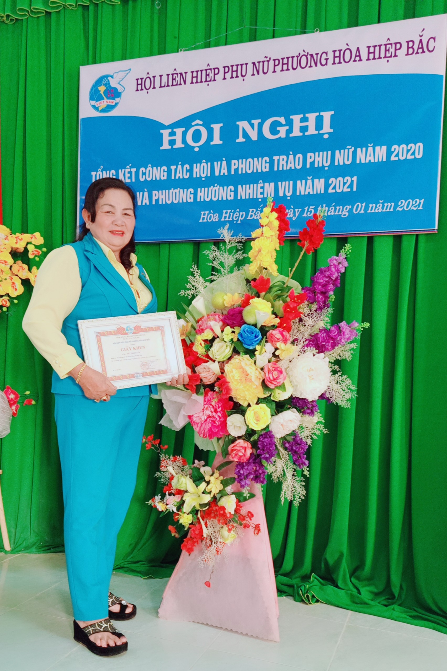 Chị Duyên nhận khen thưởng trong tổng kết phong trào phụ nữ năm 2020 - 2021