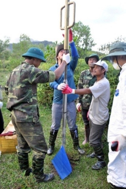 | Hình 1. Tiến hành lấy mẫu đất nhiễm dioxin tại hiện trường |