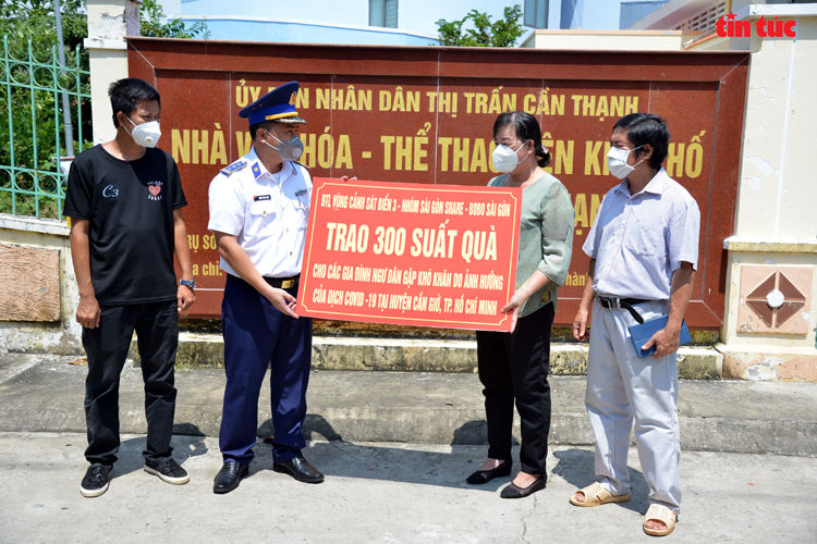 Chiều ngày 29/9, đoàn công tác Bộ Tư lệnh Vùng Cảnh sát biển 3 đã phối hợp với nhóm Sài Gòn Share và nhóm Bobo Sài Gòn đến trao 300 suất quà (mỗi suất trị giá 500.000 đồng) hỗ trợ cho ngư dân có hoàn cảnh khó khăn bị ảnh hưởng bởi dịch bệnh COVID-19 trên địa bàn huyện Cần Giờ.