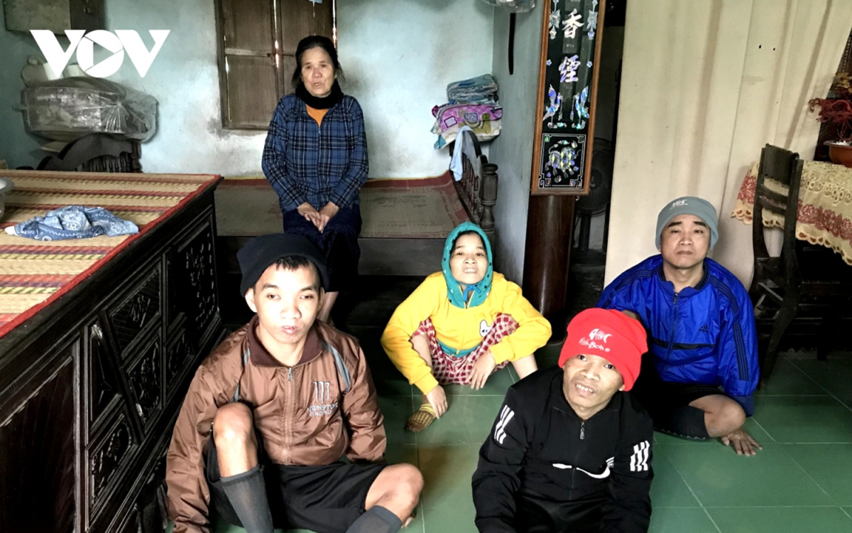 | Bốn người con tật nguyền của ông bà Trần Văn Trâm, Trần Thị Dần. Ảnh: Lan Phương |