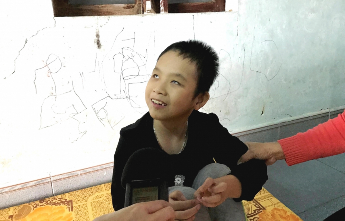 Ở thôn Thượng Lâm, xã Cam Thịnh, huyện Cam Lộ, cháu Lê Gia Bảo là NNCĐDC thuộc thế hệ F3, là chắt ngoại của ông Trần Văn Lường, NNCĐDC. Gia Bảo đã 9 tuổi nhưng nhận thức chỉ như trẻ lên ba, lên bốn. Chị Trần Thị Lại, mẹ cháu Bảo cho biết sau khi sinh con được hơn 1 tháng, gia đình phát hiện cháu bị bệnh tim bẩm sinh và đục thủy tinh thể. Mổ tim xong, tiếp tục phẫu thuật đục thủy tinh thể nhưng mắt cháu ngày càng mờ. Nên cháu chỉ có thể ngồi sát tivi để nghe tiếng. Cháu không thể tự chăm sóc bản thân vì chân tay yếu cộng với mắt kém. Chị Lại mong mỏi: “Chỉ mong mắt con sáng, có cơ hội được nhìn thấy cuộc sống, được nhìn thấy cha mẹ, bạn bè…”.