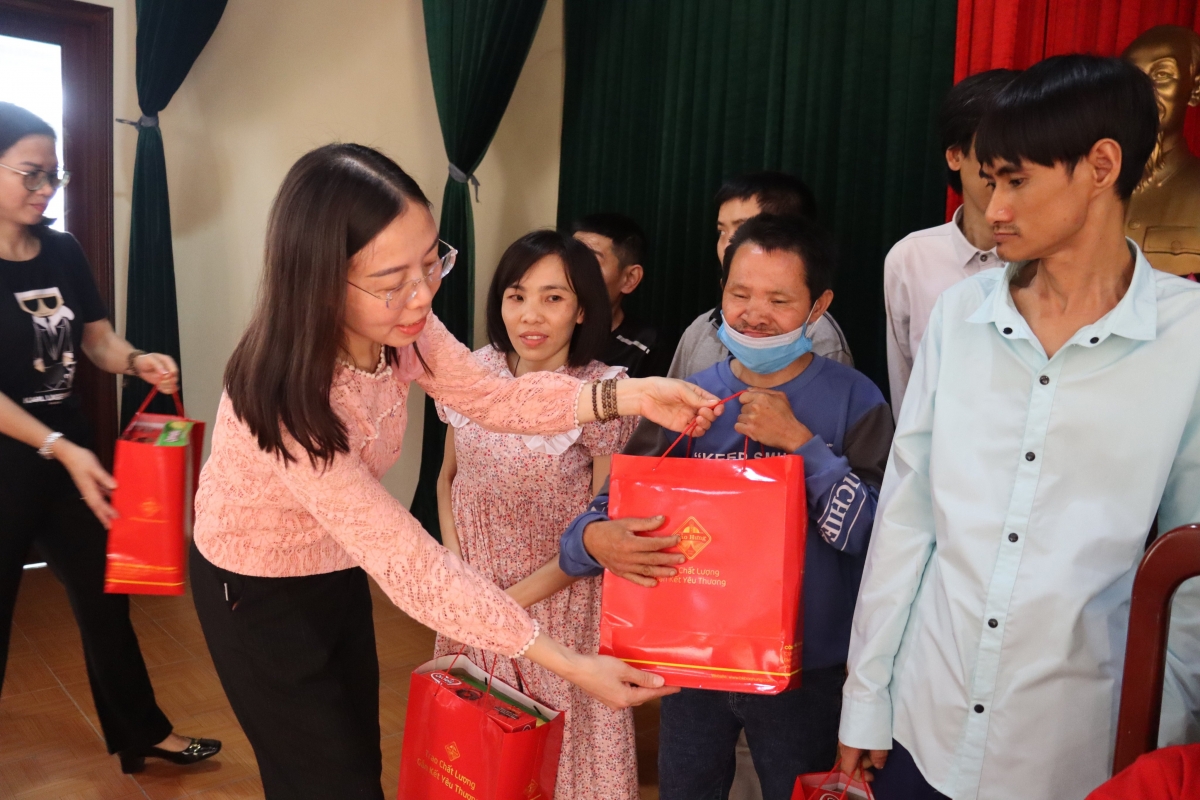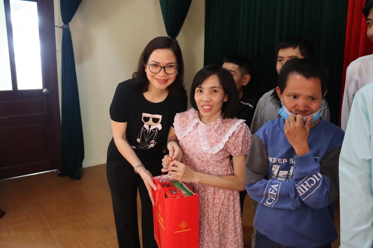 Dự trao quà có bà Mai Khanh, Trưởng ban Đối ngoại thuộc cơ quan Trung ương Hội; ông Nguyễn Thăng Long, Giám đốc và cán bộ Trung tâm.