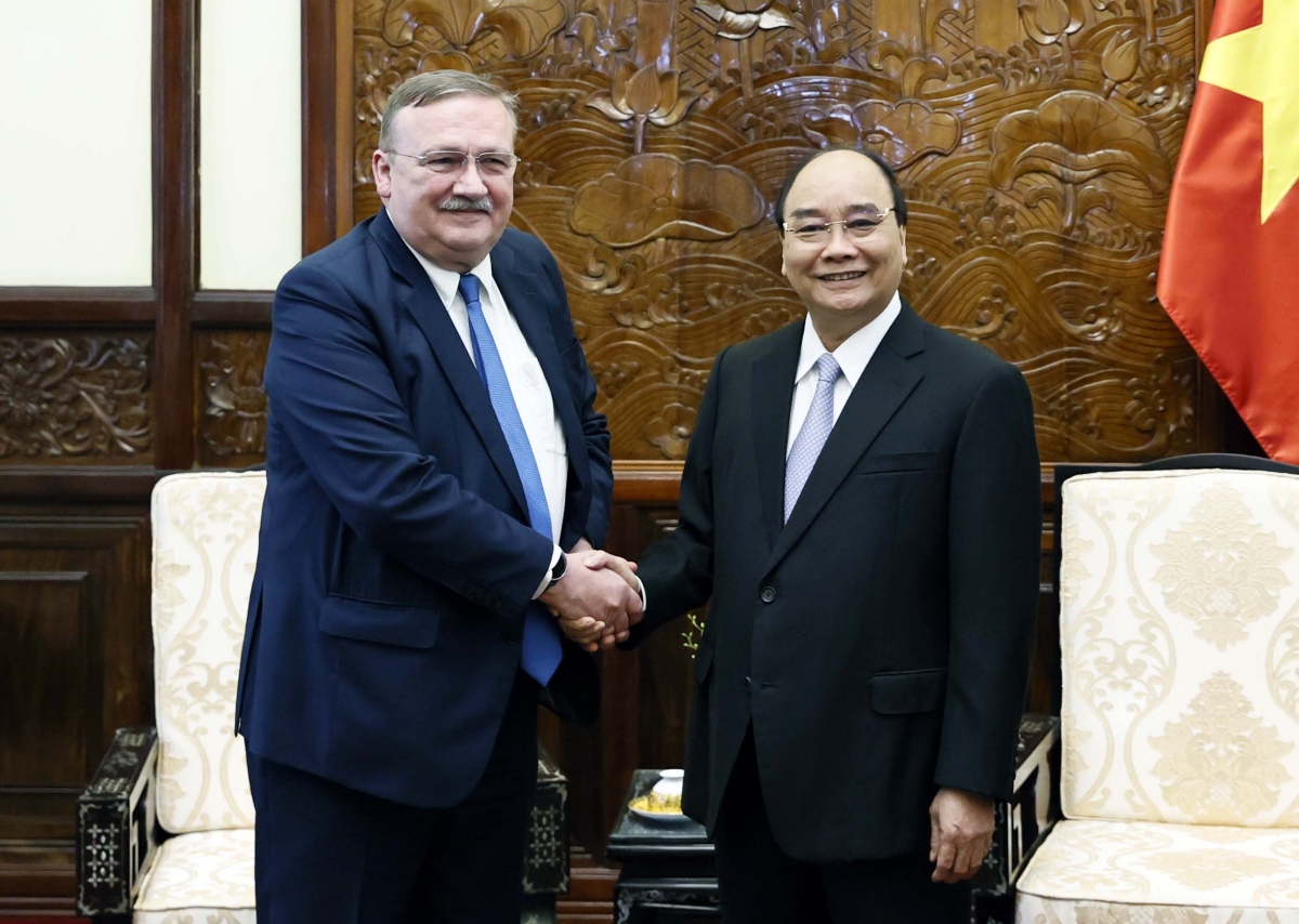 Chủ tịch nước Nguyễn Xuân Phúc tiếp Đại sứ Hungary chào từ biệt. Ảnh: VOV
