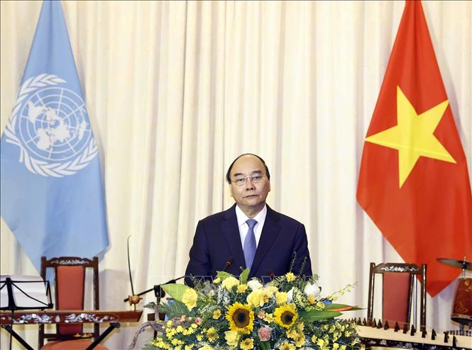Phát biểu tại sự kiện này, Chủ tịch nước Nguyễn Xuân Phúc khẳng định, việc trở thành thành viên thứ 149 của Liên hợp quốc là khởi đầu chặng đường lịch sử mới trong xây dựng và bảo vệ Tổ quốc Việt Nam. Chặng đường chứng kiến đất nước Việt Nam hồi sinh từ đổ nát của chiến tranh; Đổi mới, hội nhập quốc tế sâu rộng, vươn lên trở thành quốc gia đang phát triển có nền kinh tế năng động, đạt mức thu nhập trung bình với Chỉ số Phát triển con người (HDI) ở mức cao. Việt Nam luôn là bạn, đối tác tin cậy, có trách nhiệm của cộng đồng quốc tế, là thành viên của nhiều tổ chức quốc tế, chủ động hội nhập, tham gia Tổ chức Thương mại Thế giới (WTO), 17 hiệp định thương mại tự do (FTA) và là một phần quan trọng trong chuỗi cung ứng toàn cầu.