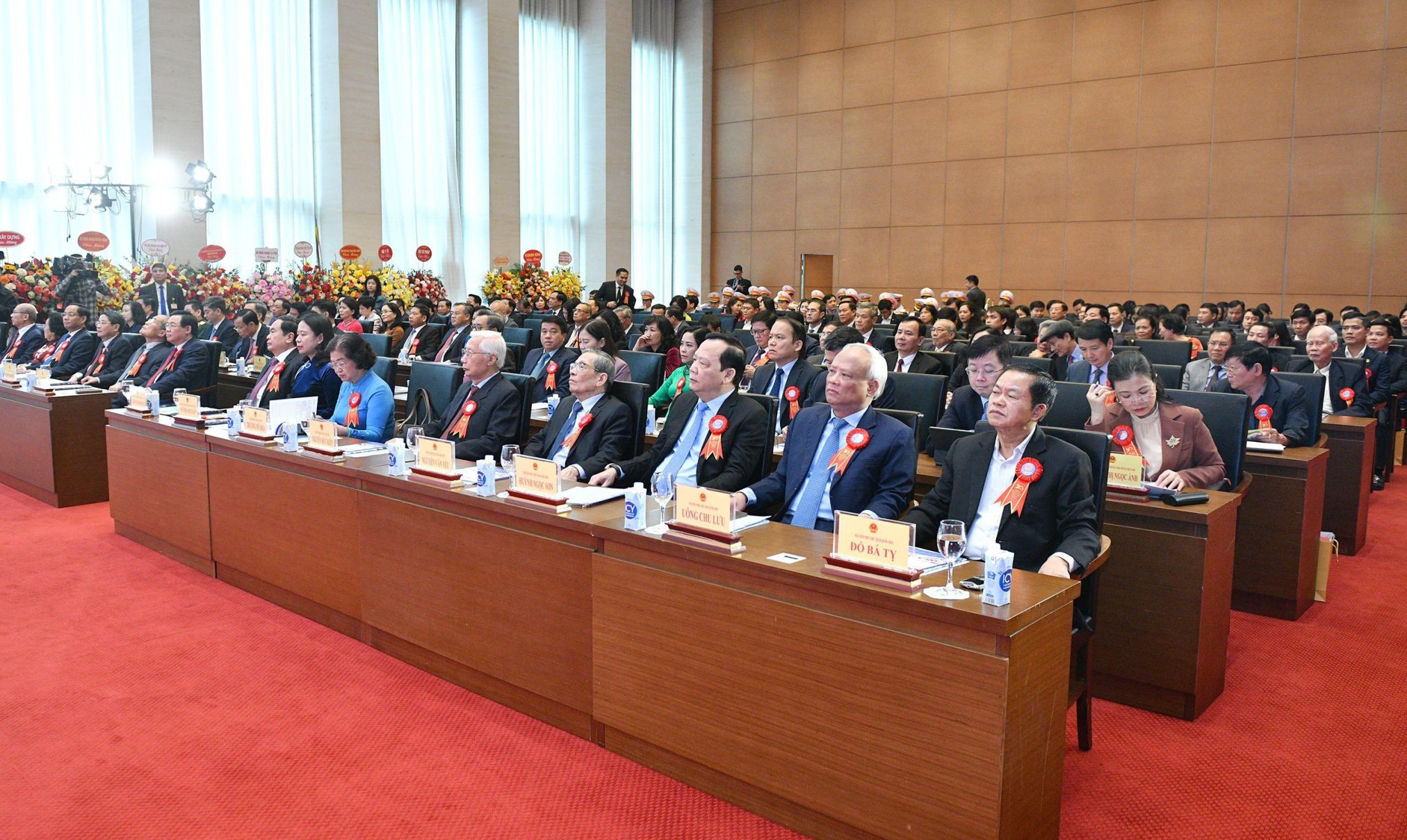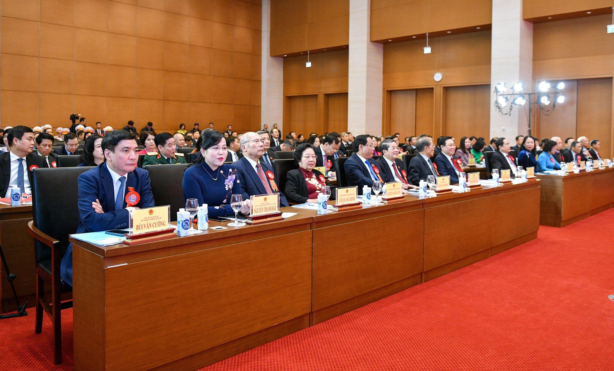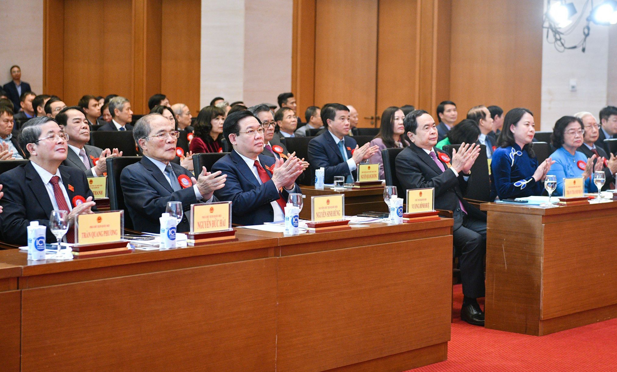 Chủ tịch Quốc hội Vương Đình Huệ và nguyên Chủ tịch Quốc hội Nguyễn Sinh Hùng cùng các đại biểu dự Lễ kỷ niệm.