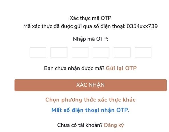 Bước 5: Thực hiện phương thức xác thực 2 lớp. Đối với mã OTP, hãy nhập mã được gửi về qua tin nhắn SMS, sau đó nhấn Xác nhận.
