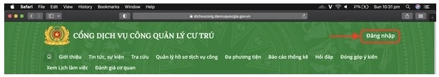 Bước 1: Truy cập vào hệ thống Cổng dịch vụ công quản lý cư trú tại địa chỉ https://dichvucong.dancuquocgia.gov.vn/