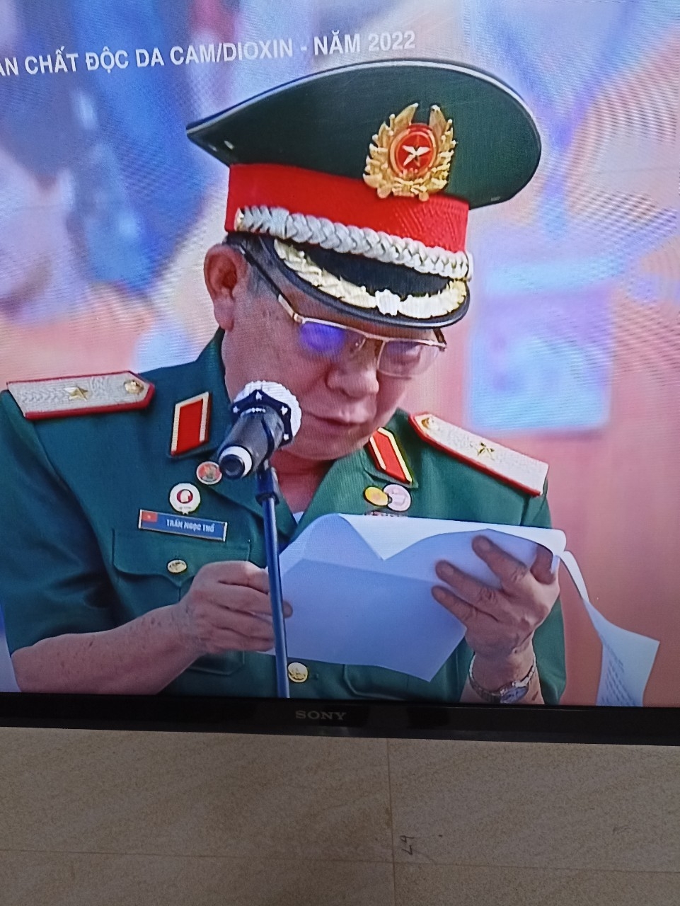 | Thiếu tướng Trần Ngọc Thổ, Phó Chủ tịch Hội Nạn nhân chất độc da cam/dioxin Việt Nam - Chủ tịch Hội Nạn nhân chất độc da cam/dioxin Thành phố Hồ Chí Minh phát biểu |