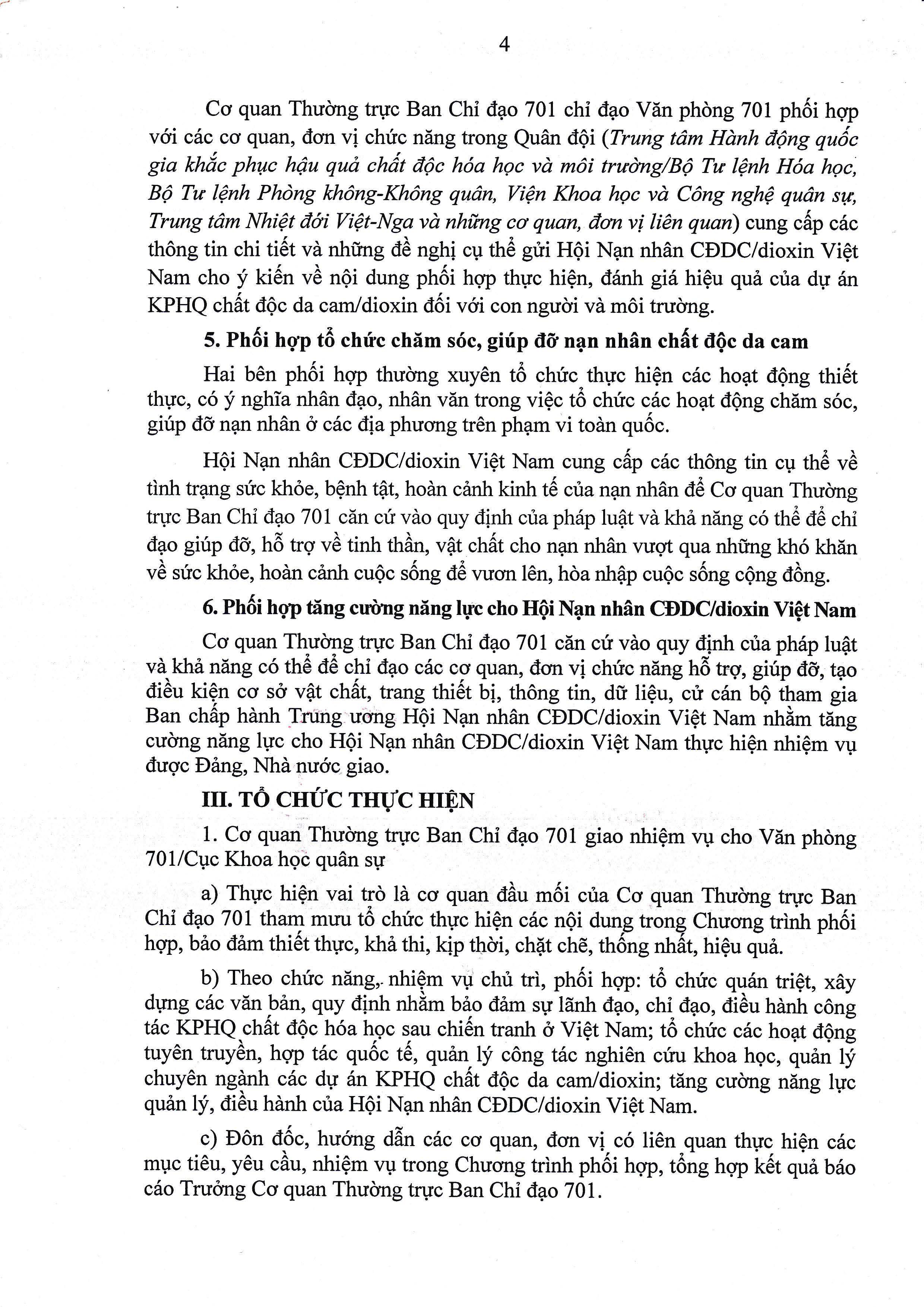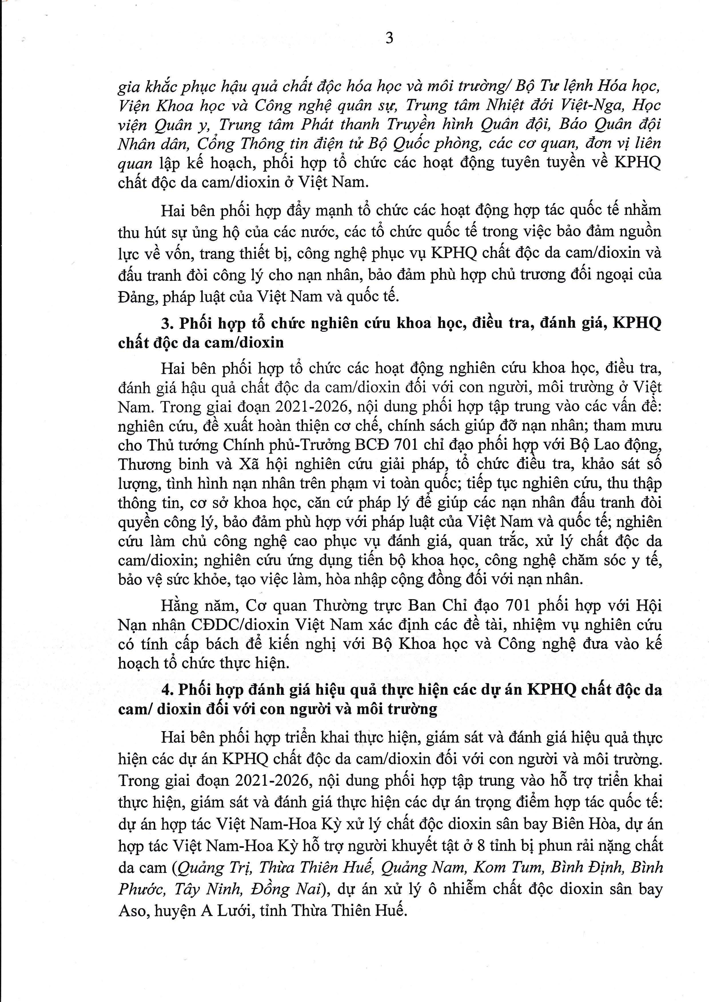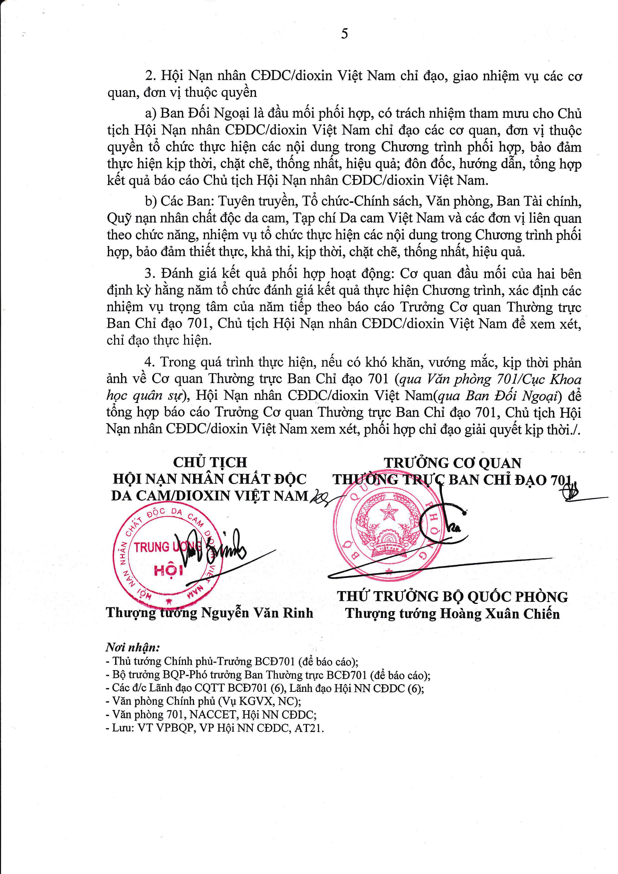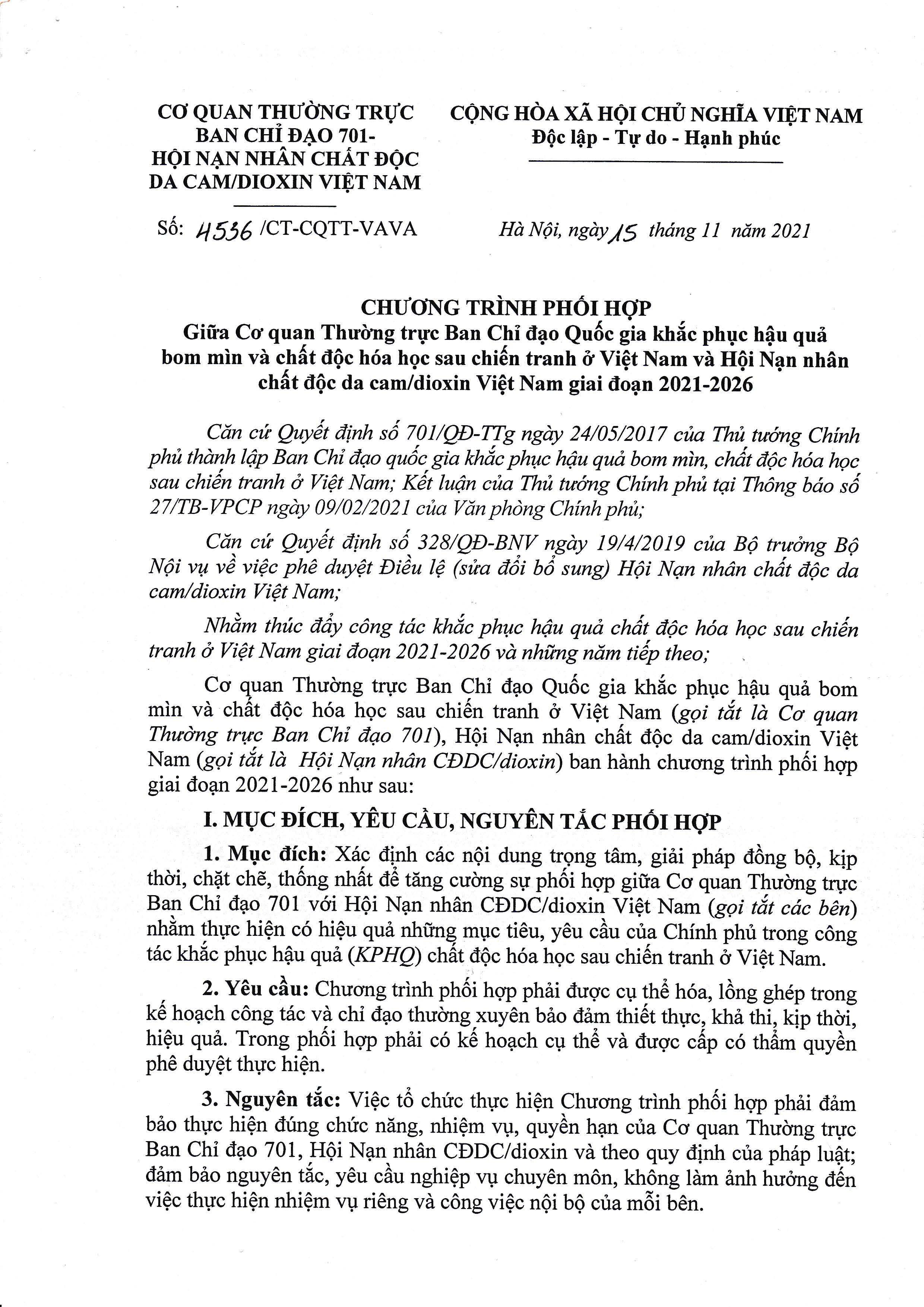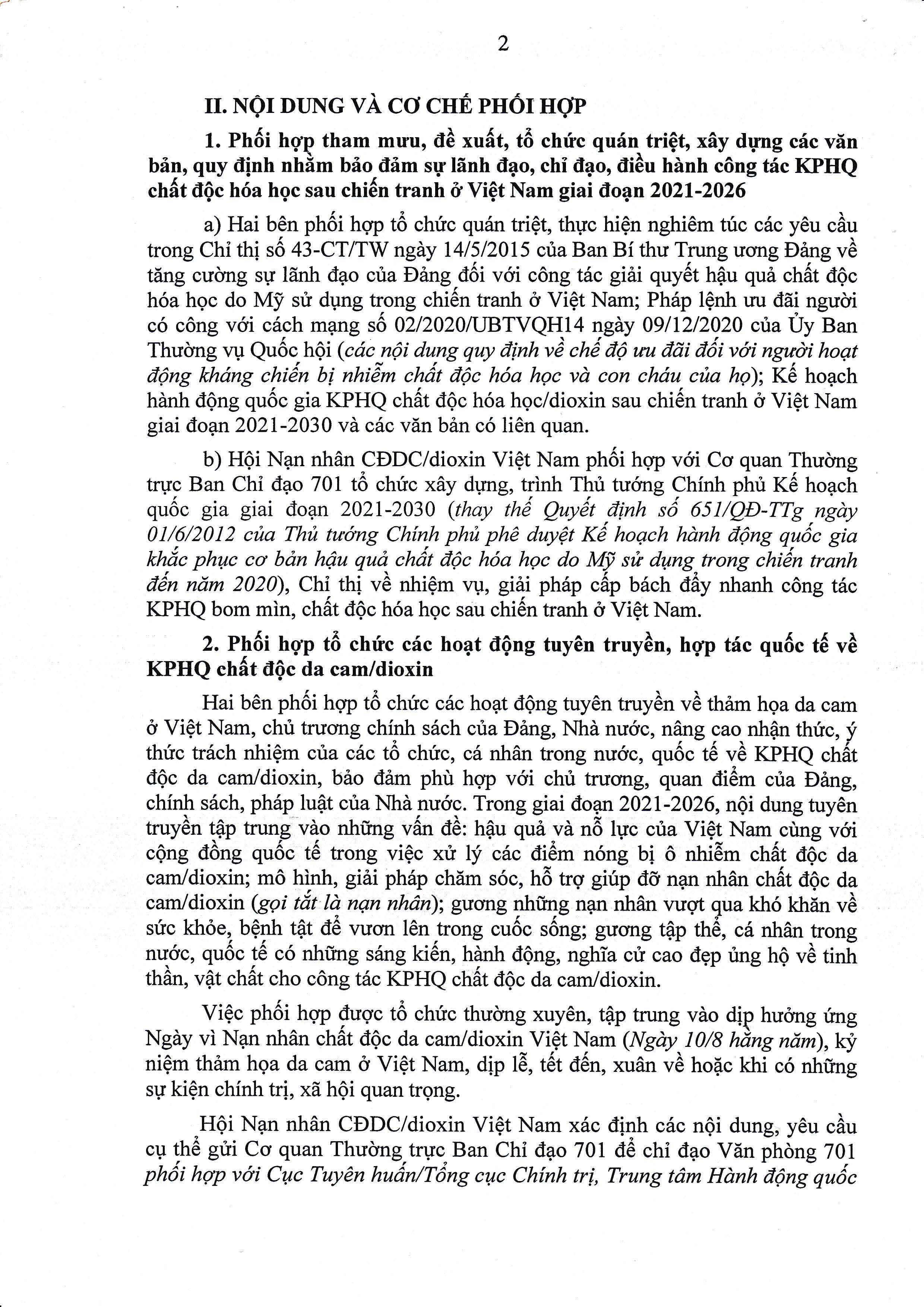 Chương trình phối hợp giữa Cơ quan Thường trực Ban Chỉ đạo Quốc gia khắc phục hậu quả bom mìn và chất độc hóa học sau chiến tranh ở Việt Nam và Hội NNCĐDC/dioxin Việt Nam giai đoạn 2021 - 2026
