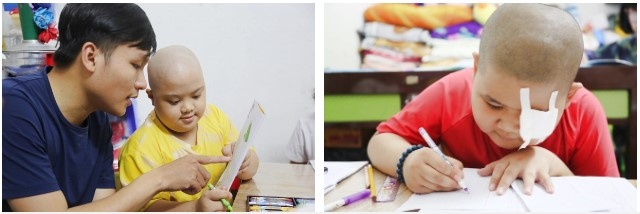 | Dù mang trong mình căn bệnh quái ác nhưng những đứa trẻ trọc đầu lúc nào cũng ham học chữ, làm toán, vẽ tranh... |